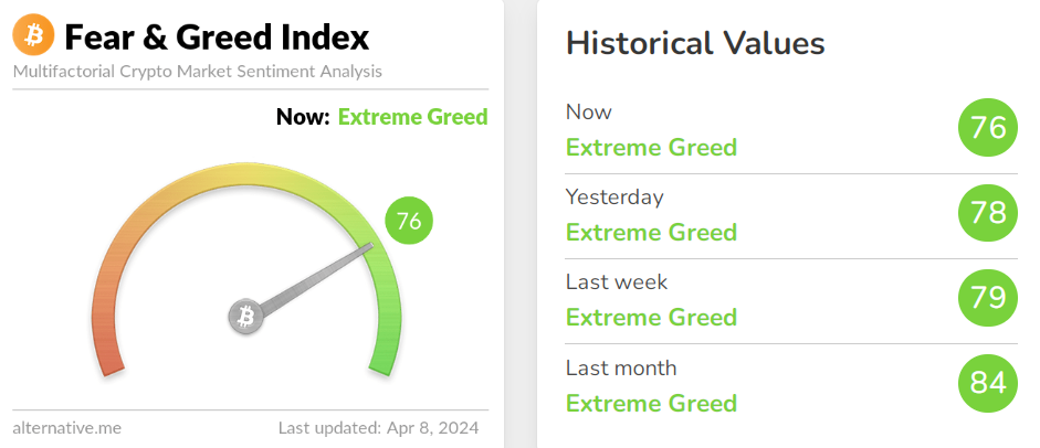 Монеты из топ-10 капитализации начали рабочую неделю с коррекции. Индекс страха и жадности тем временем остается в зеленой зоне.