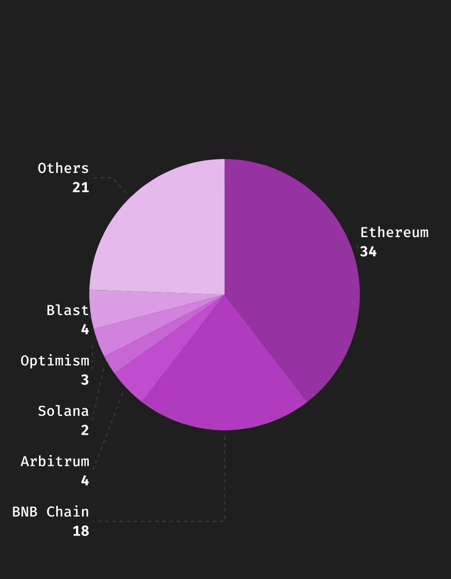Самой атакуемой сетью остается Ethereum. За ней следует BNB Chain. На эти два блокчейна пришлось 52 инцидента, или 71% от всех происшествий во втором квартале.