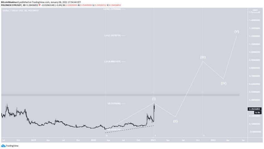XLM начал рост после достижения минимума в марте 2020 года. Новый тренд в конечном счете выведет монету к историческим максимумам.