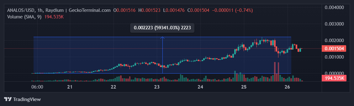 Неизвестный трейдер превратил $900 в $3,47 млн за 5 дней благодаря криптовалюте analoS (ANALOS).