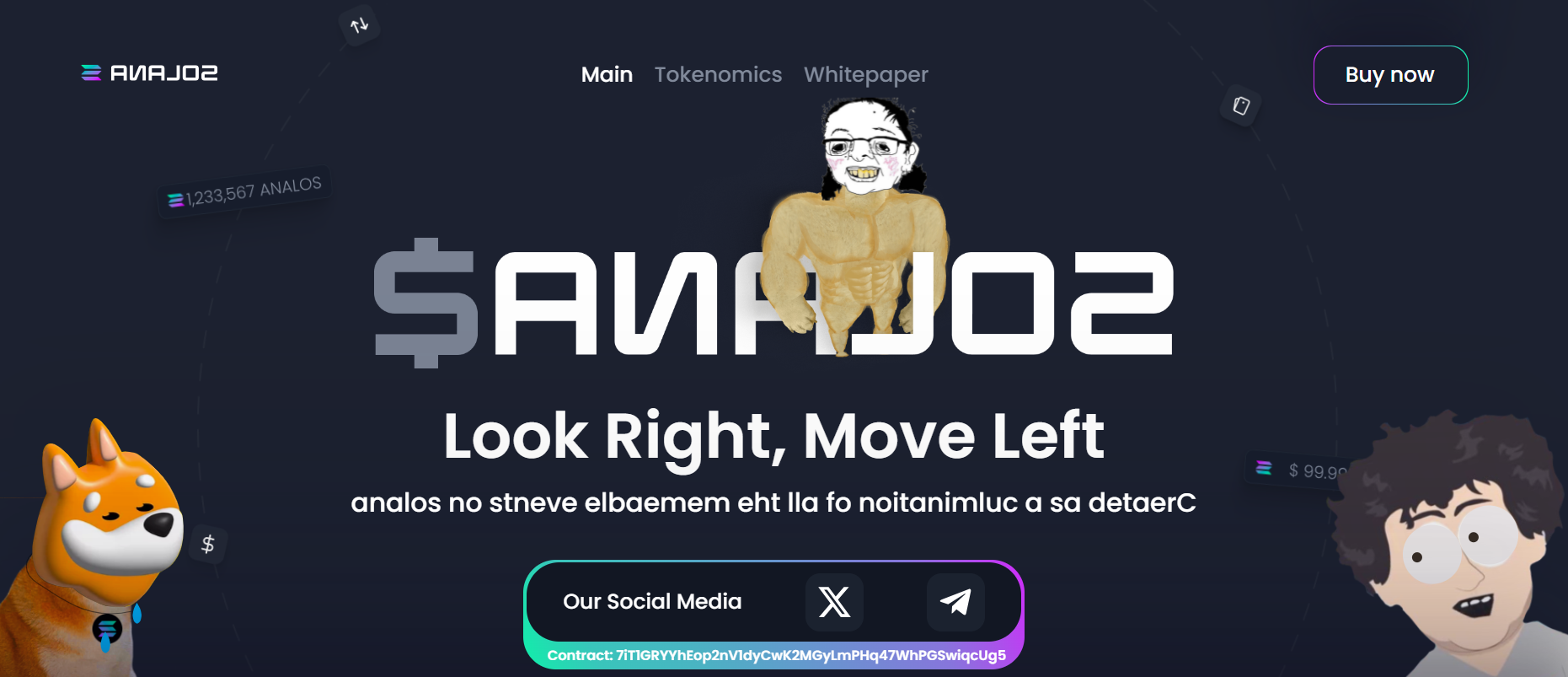 Название analoS — палиндром Solana. Авторы проекта, судя по всему, решили не останавливаться на одном проекте. На сайте analoS также есть отсылка к «собачьим» мемкоинам, а также знаменитой парочке — Кэролайн Эллисон и Сэму Бэнкман-Фриду, которые стоят за крахом криптобиржи FTX.