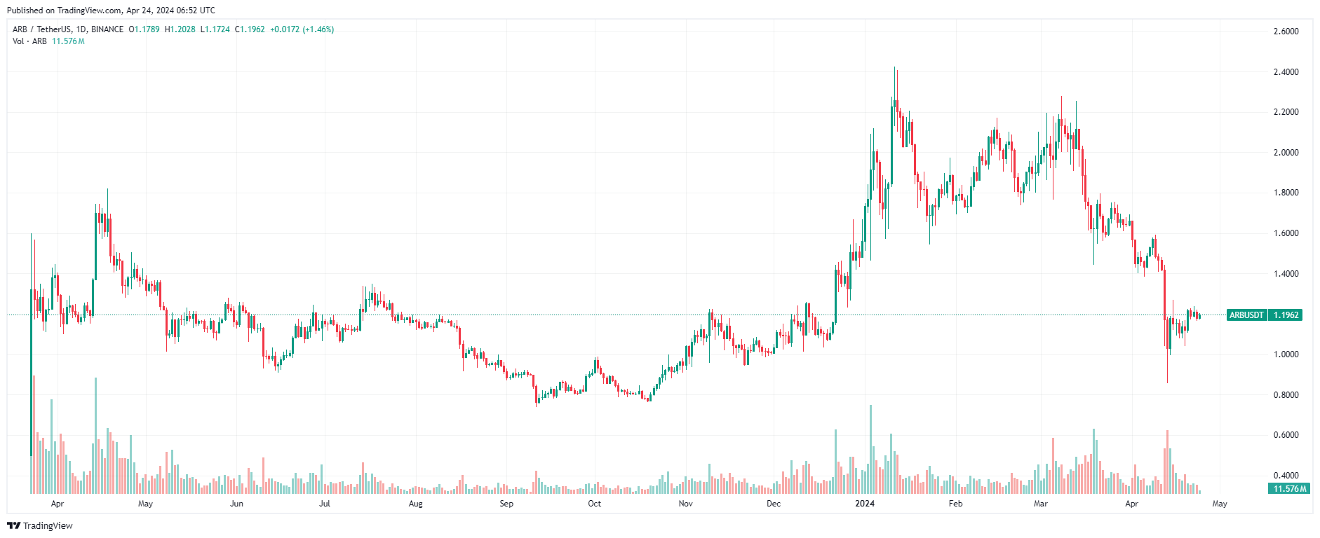 Почему аналитик советует купить ARB: Поппе обратил внимание на доказанную эффективность Arbitrum. Спрос на инструменты проекта, по его мнению, продолжат толкать курс ARB вверх. Также он обратил внимание на реализованную криптовалютой коррекцию, которая открыла потенциально хорошую точку входа для инвесторов.