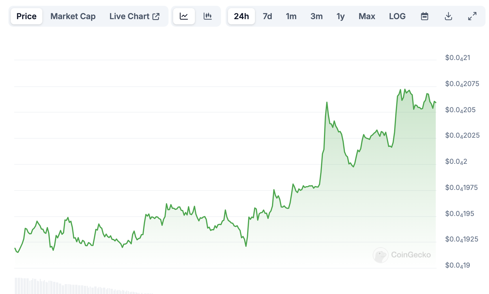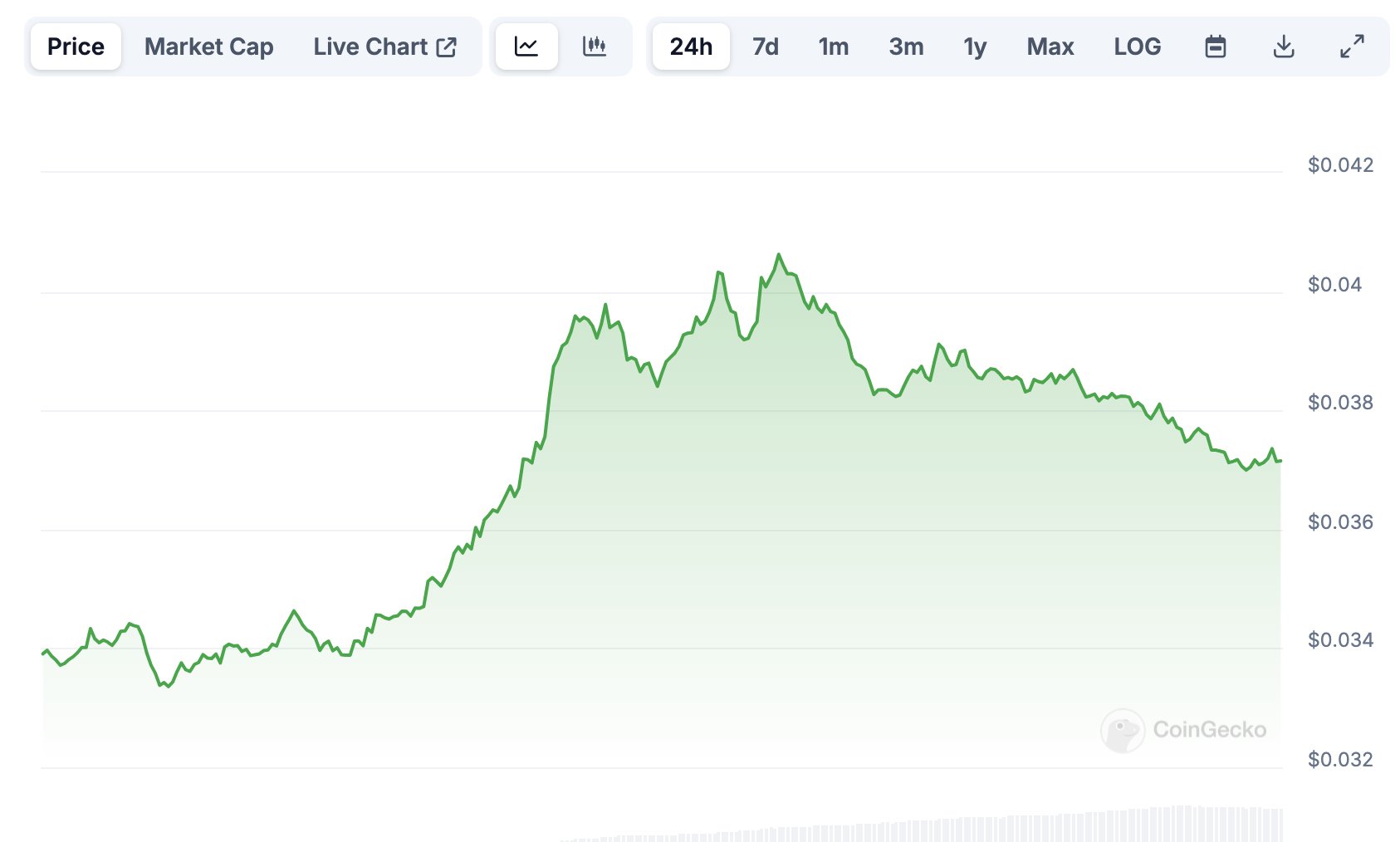PENGU торгуется на уровне $0,0376. Мемкоин, посвященный пингвинам, вошел в пятерку лучших мемкоинов, достигнув нового исторического максимума на уровне $0,070, что на 130% выше текущей цены. Он обогнал популярные токены, такие как dogwifhat (WIF) и Floki (FLOKI), а его растущая популярность привлекла значительное внимание инвесторов в сфере мемкоинов.