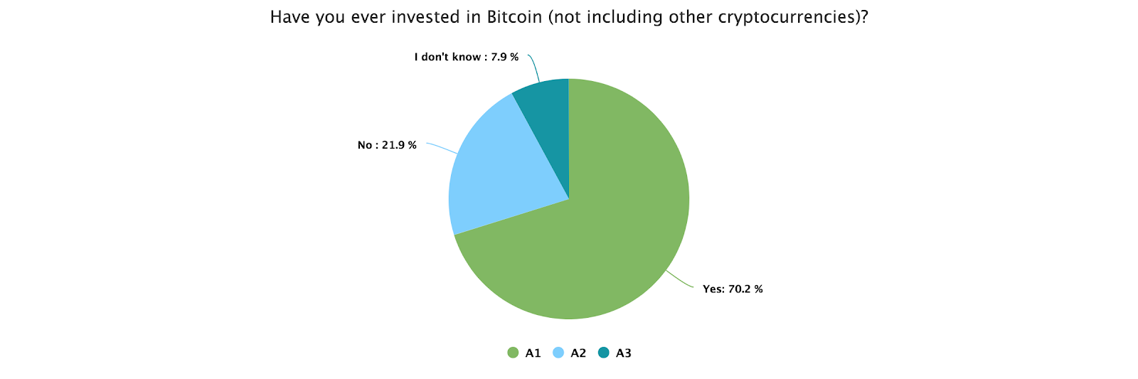 Еще 8,6% инвесторов заявили, что инвестировали, потому что хотели использовать биткоин в качестве децентрализованной альтернативы поддерживаемым государством валютам, что являлось его первоначальной целью. Около 2,6% инвестировали, потому что поддержка децентрализованной валюты, конфиденциальности и цензуры лучше соответствует их убеждениям. Наконец, 6% инвестировали, потому что им было интересно узнать о технологии.
