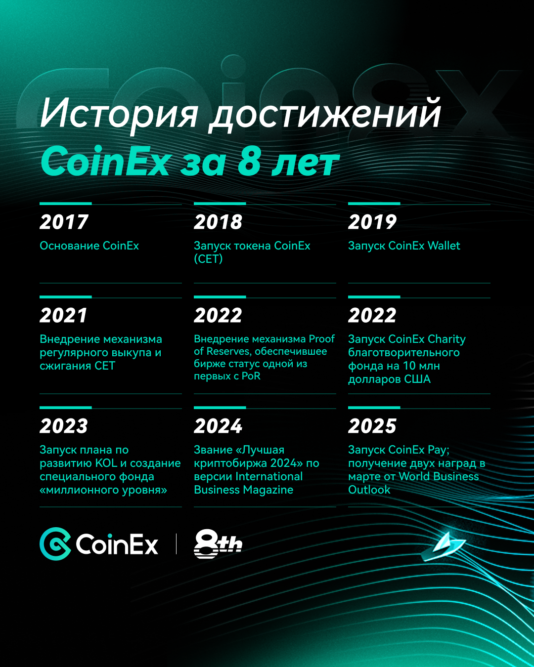 На протяжении восьми лет путь CoinEx формировался вместе с пользователями. Впереди — новый этап развития и дальнейшее движение вперед.