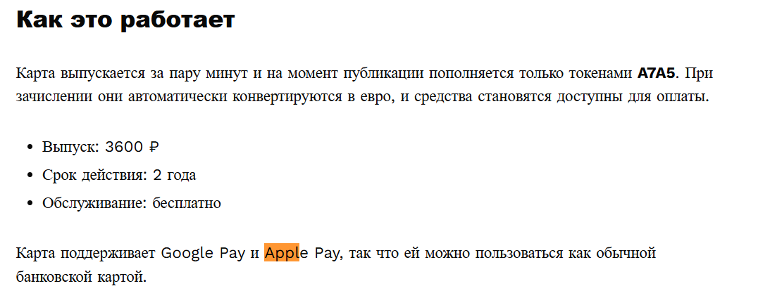 Также, как оказалось, к ней нельзя привязывать Apple Pay, хотя в публикации на a7a5.pro есть такие обещания.