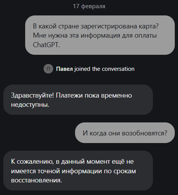 Например, в ходе беседы с представителем проекта удалось выяснить, что картой невозможно оплатить некоторые сервисы, включая ChatGPT.