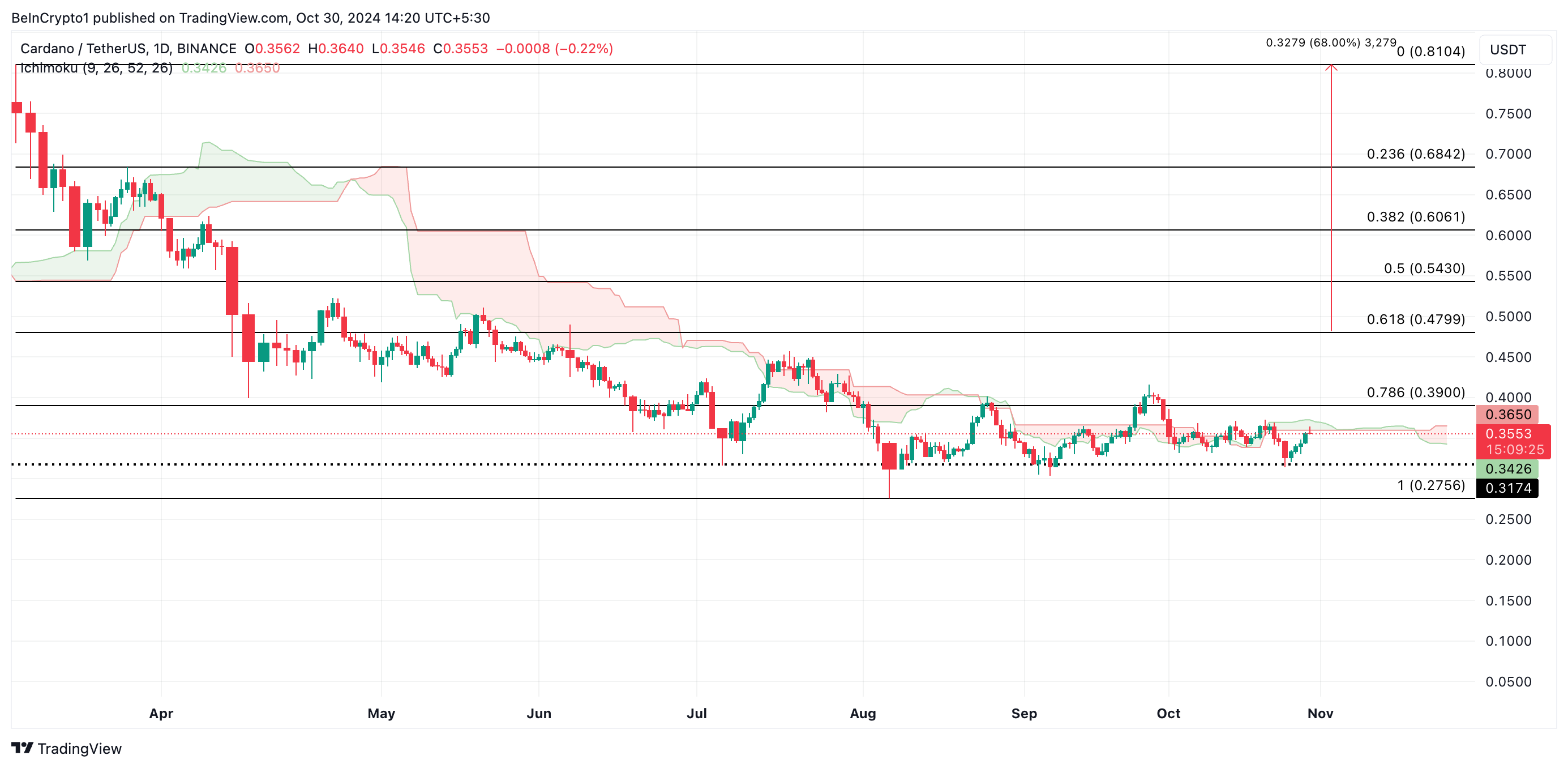 Однако, если продажи усилятся, Cardano может не суметь превратить облако Ишимоку в поддержку. Такой неудачный исход может привести к потере недавно набранных очков, и цена просядет до $0,31. Если быки не удержат этот уровень, ADA может опуститься до $0,27.