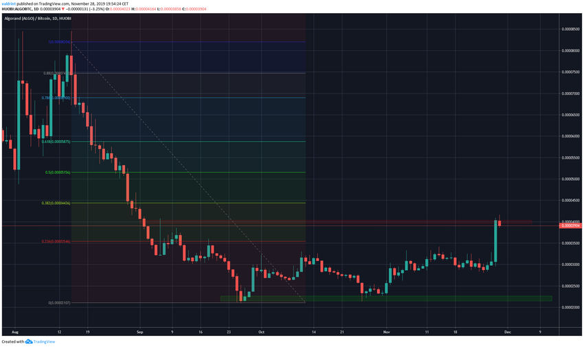 ALGO торговался в диапазоне, ограниченном уровнями 2200 и 3300 сатоши, с сентября по ноябрь.