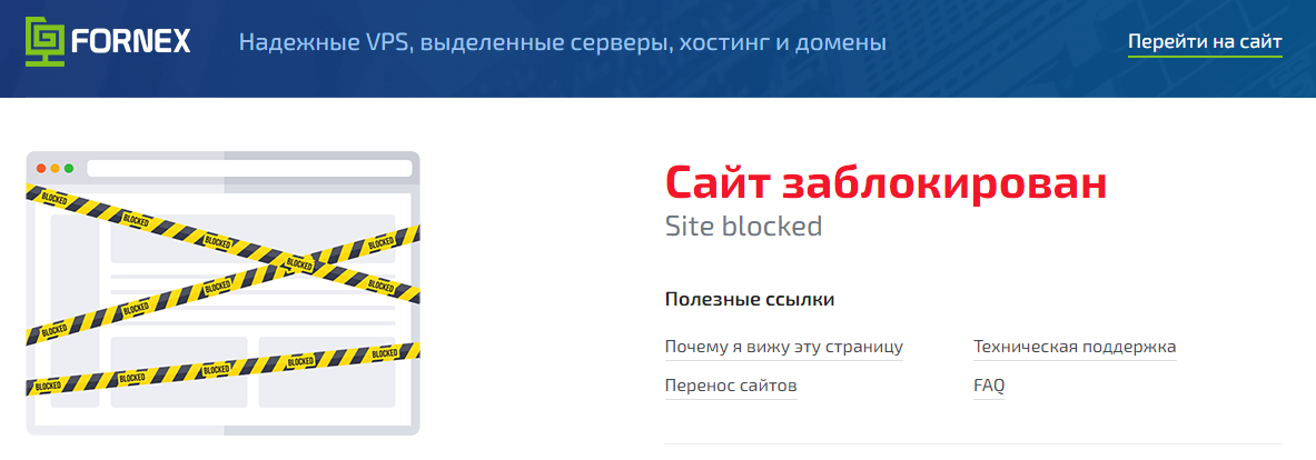 Переходим на сайт и получаем уведомление, что сайт заблокирован.