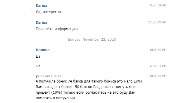 SponsoredПогуглив немного информацию, я не нашла ни единого упоминания о airdrop на официальных сайтах Tether. Поняла, что что-то здесь нечисто, поэтому продолжила общение. Полина обещала поделиться со мной информацией об airdrop, если я заплачу ей определенный процент от полученных монет. Интересный подход!