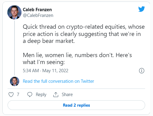 SponsoredАналитик рынка Калеб Франзен привел факты и цифры, а также пояснил, почему крипторынок находится на пороге сурового медвежьего тренда.