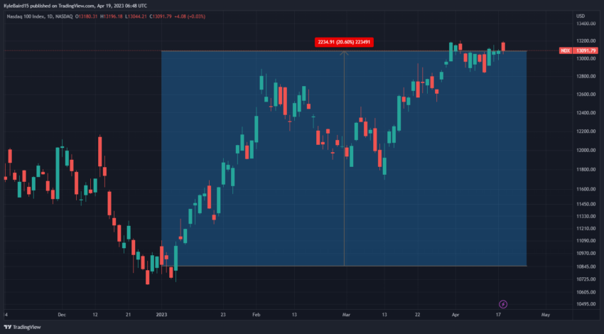 Тем временем, ориентированный на технологические компании индекс NASDAQ 100 с начала 2023 года прибавил всего 20%.