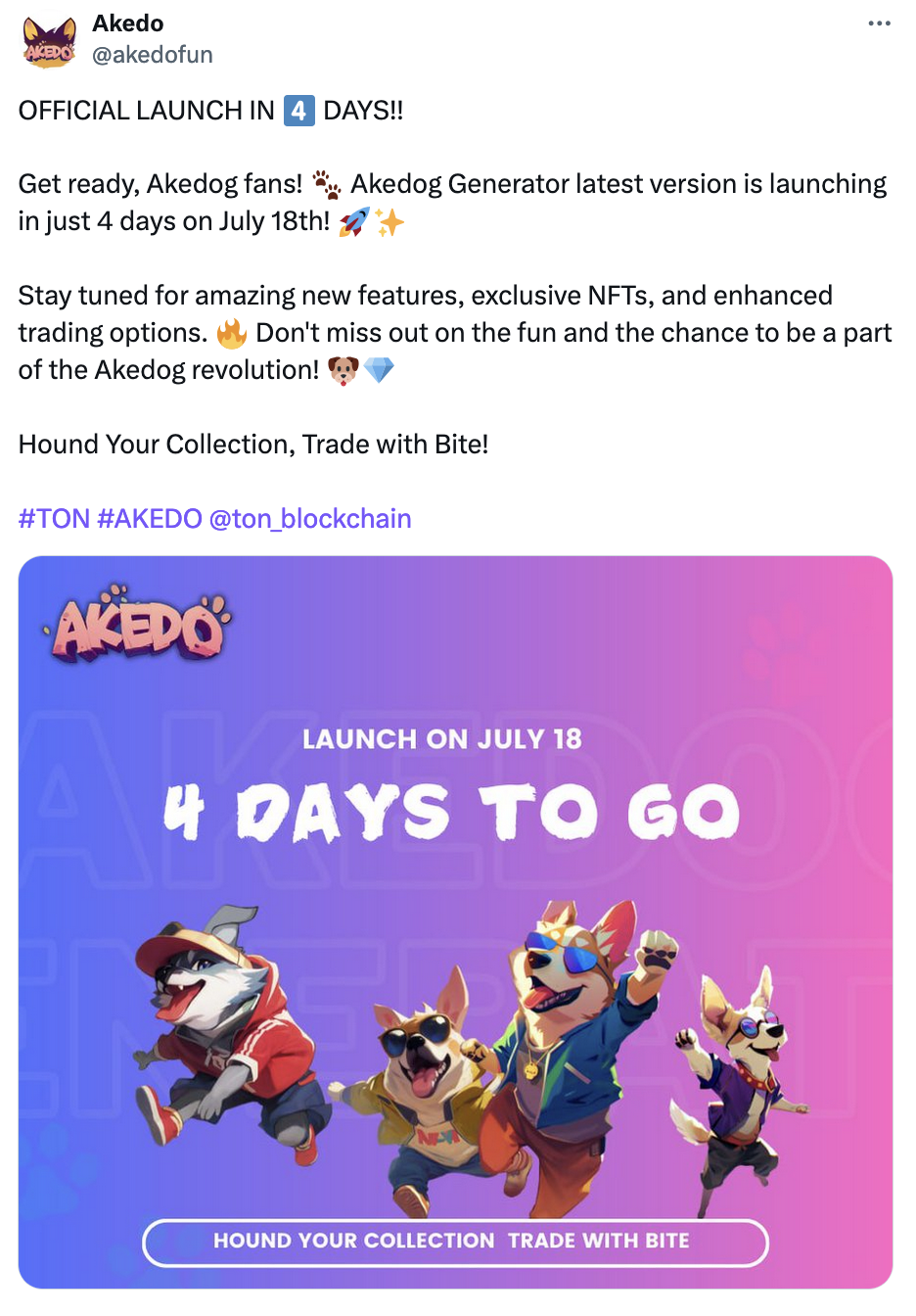 Новый проект Akedo для мессенджера «Телеграм» получил название Akedog. Он представляет собой игру-кликер в жанре «тапай и зарабатывай» (от англ. tap-to-earn).