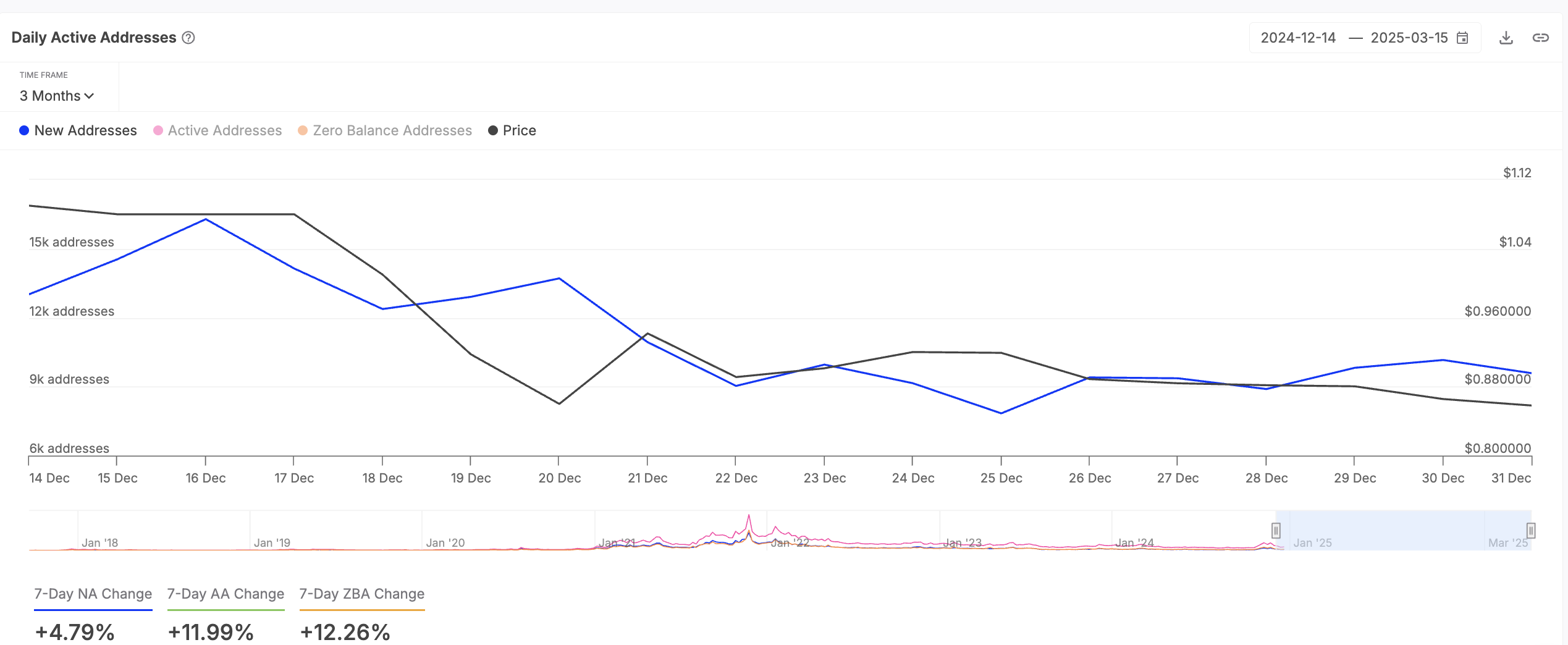За последнюю неделю также вырос спрос на ADA. По данным IntoTheBlock, количество новых адресов, торгующих монетой, увеличилось на 4%.