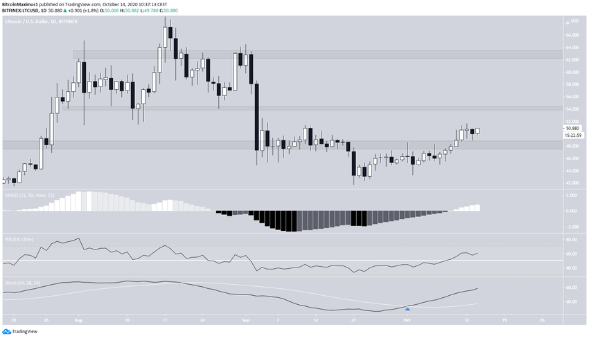 Итак, LTC может подняться к отметке $54 и даже превысить ее, но более долгосрочная картина говорит в пользу медвежьего хода.