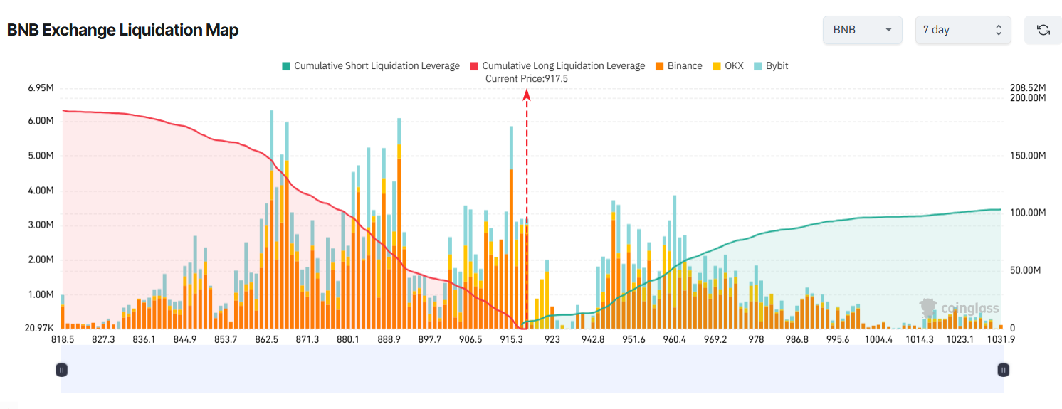 SponsoredГлавный фактор риска для держателей длинных позиций — рост открытого интереса (OI). По данным Coinglass, на 14 сентября OI по фьючерсам на BNB достиг $1,72 млрд. В этом квартале он уже трижды превышал отметку $1,5 млрд, и каждый раз это заканчивалось коррекцией на 7–15%. Если ситуация повторится, текущий рост открытого интереса может обернуться новой волной ликвидаций.