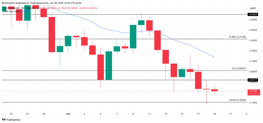 Однако медвежьи настроения сохраняются. На дневном графике альткоин остается ниже 20-дневной экспоненциальной скользящей средней (EMA) — это означает, что на рынке доминируют продавцы.