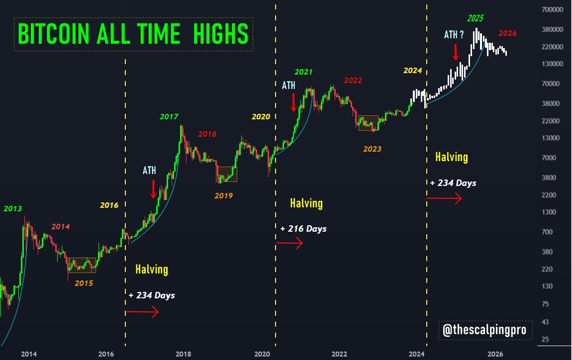 В твите от 1 декабря @Mags отметил, что в 2016 году биткоину потребовалось 234 дня после халвинга, чтобы обновить исторический максимум. В 2020 году главная криптовалюта преодолела этот барьер через 216 дней и продолжила рост, который привел к достижению нынешнего ATH в $68 789.