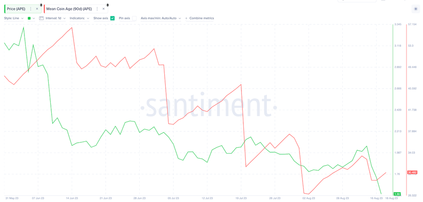 Поскольку нисходящий тренд показателя Mean Coin Age пока не ослабевает, стратегические инвесторы ожидают новых распродаж в ближайшие дни. Если в ближайшие дни Apecoin продолжит падение, шансы на скорый отскок значительно снизятся.