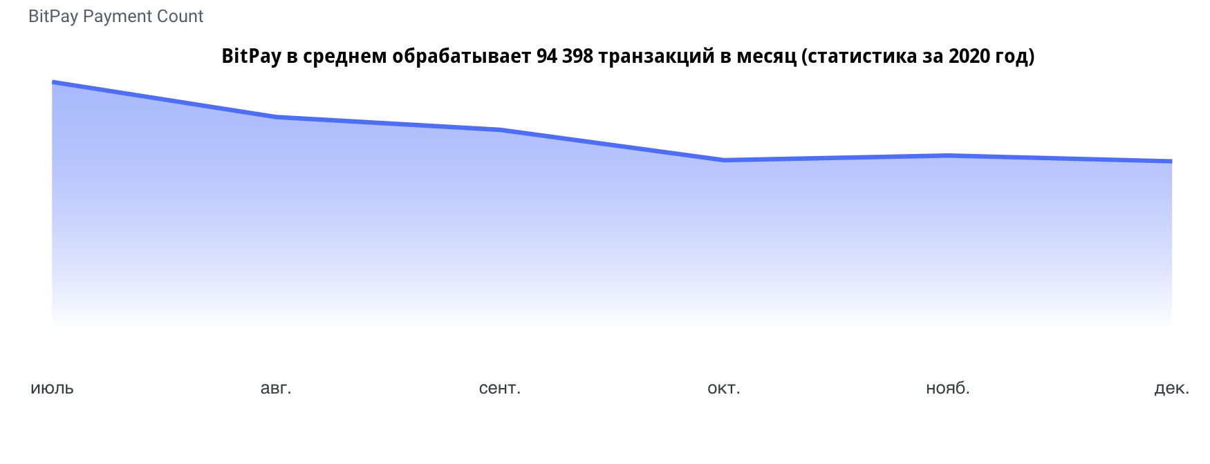 BitPay — это крупная платежная система, работающая в сегменте цифровых активов. Она позволяет покупателям и продавцам отправлять и получать криптовалютные и фиатные платежи. По данным компании, в 2020 году она ежемесячно обрабатывала свыше 94 тыс. транзакций, при этом более 80% из них приходилось на долю биткоина.
