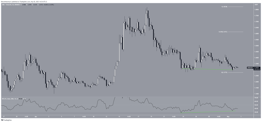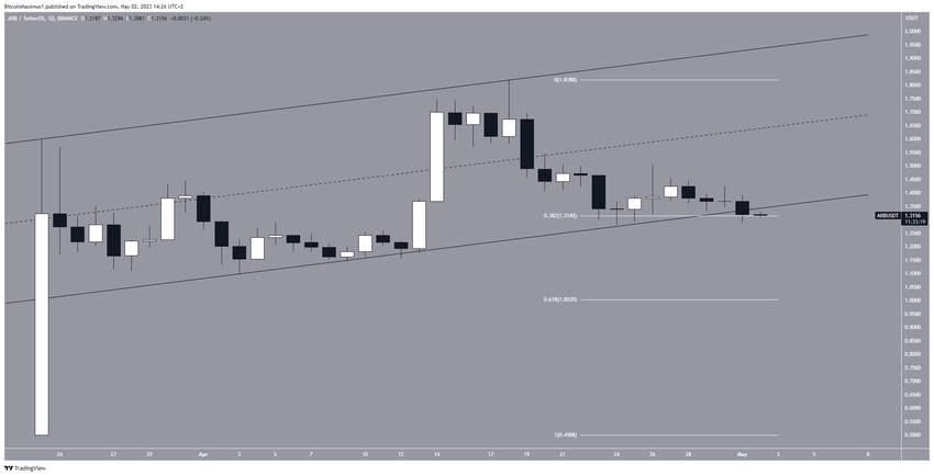 Вышеупомянутая поддержка сформирована линией поддержки долгосрочного восходящего параллельного канала и важным уровнем Фибо. Направление дальнейшего тренда может зависеть от того, отскочит ли курс ARB от этой области или совершит ее медвежий пробой.