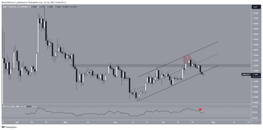 Как показывают результаты технического анализа дневного графика, 16 июля ARB, монета проекта Arbitrum, прорвала горизонтальную область $1,25. В тот момент казалось, что это бычий прорыв и начало нового восходящего движения.