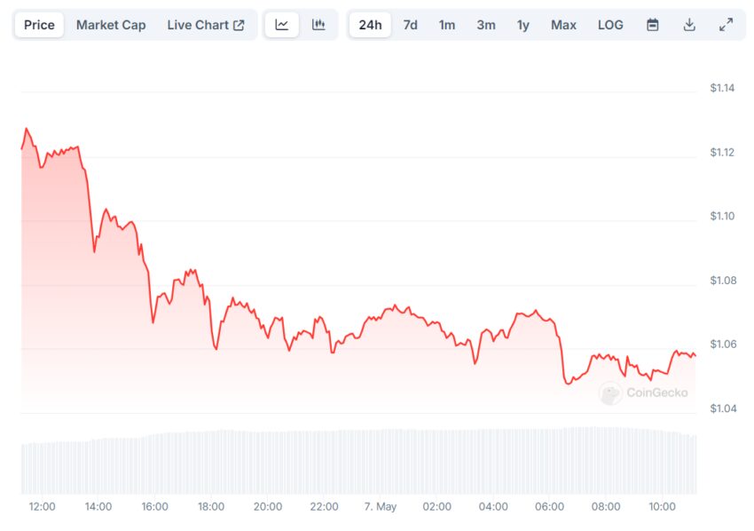 На динамику нативного токена Arbitrum — ARB — рекордные операционные показатели сети особого влияния не оказывают. Сразу после появления новости цена актива ненадолго выросла с $1,06 до $1,13. Однако после этого быстро вернулась к прежним показателям.