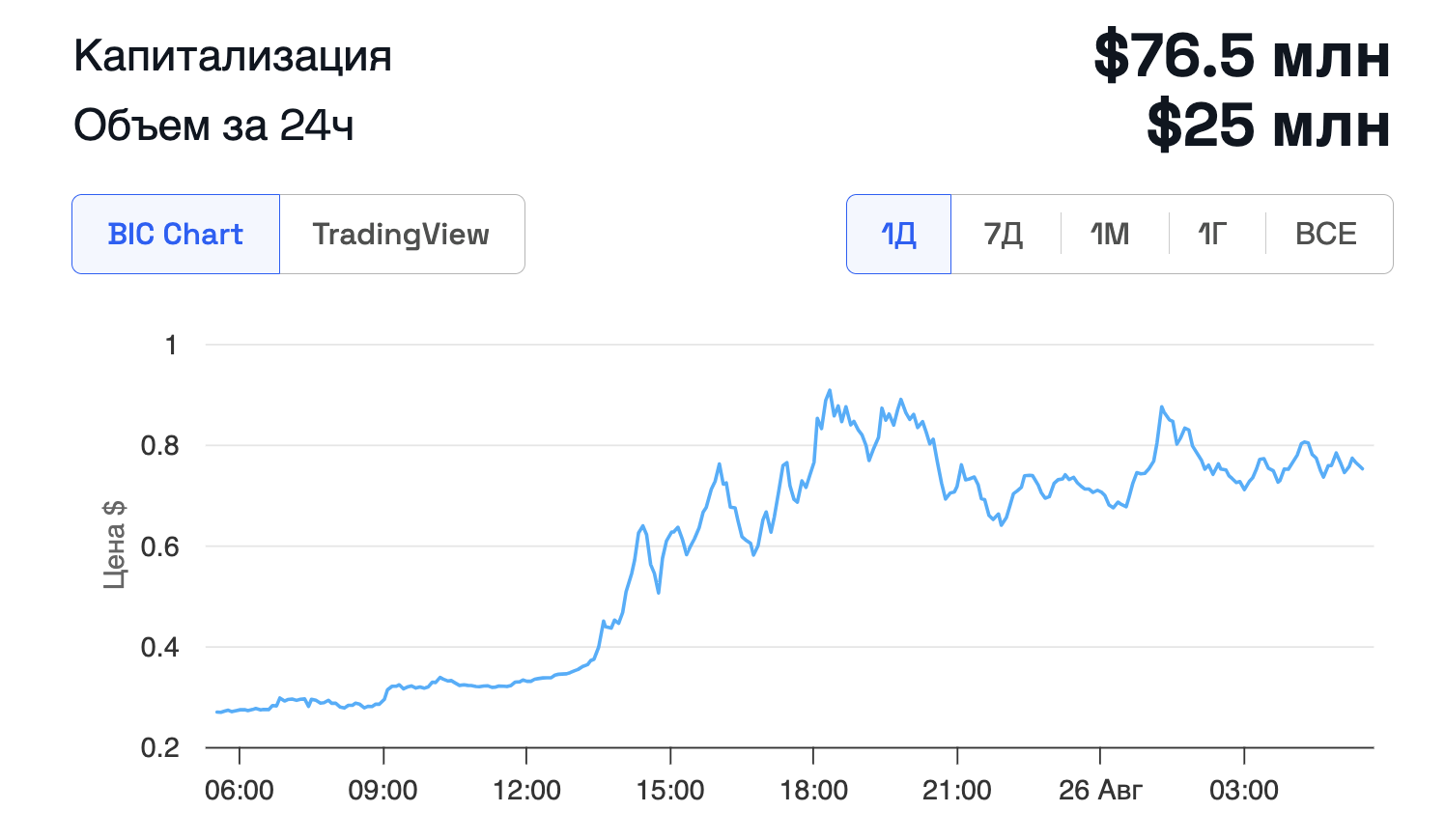 Курс REDO за сутки вырос на 173%, а объем торгов достиг $25 млн. На момент публикации он торгуется по цене $0,764926.
