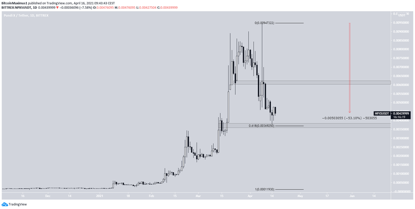 Из нашего списка альткойнов-неудачников NPXS потерял больше других. Монета достигла максимума 8 апреля на уровне $0,0094 и с тех пор движется вниз.