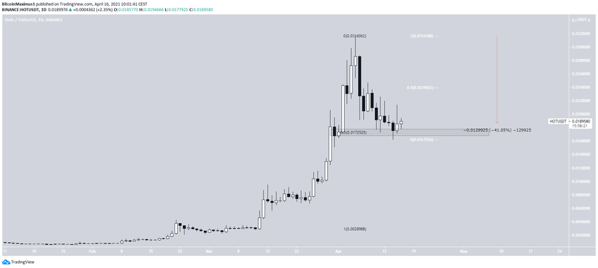 HOT достиг максимума 5 апреля на уровне $0,031. а затем развернулся и пошел вниз.