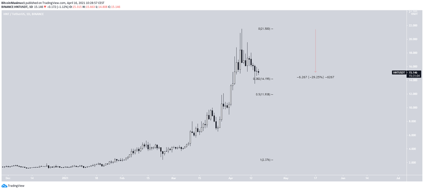 HNT снижается с 7 апреля, после достижения исторического максимума на уровне $21,50. По сравнению с другими монетами этого обзора, токен потерял не так уж много. Всего 23%.