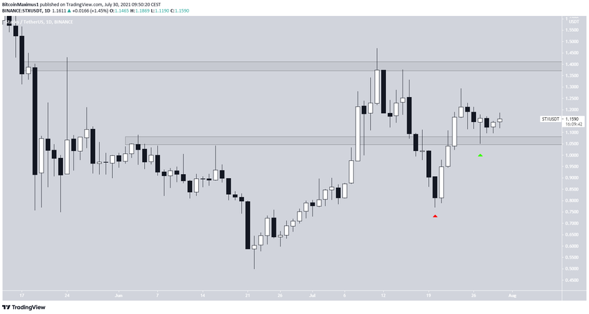 STX начал расти 22 июня и достиг максимума 11 июля на уровне $1,47. Затем токен откатился от горизонтального сопротивления $1,40 и начал снижение.