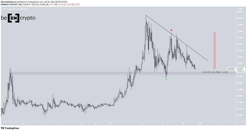 Токен SLP достиг минимума 20 июля на уровне $0,21. После коррекции цена протестировала $0,23 в качестве поддержки.