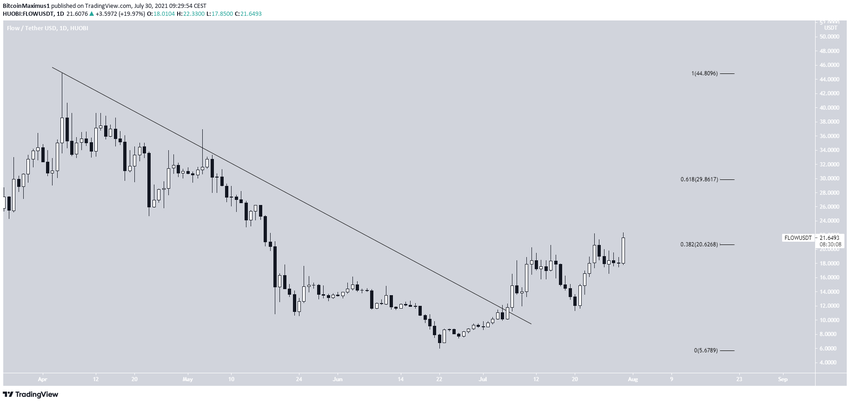 FLOW пробил нисходящую линию сопротивления 6 июля. Это инициировало восходящую динамику.