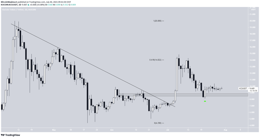 Токен преодолел нисходящее сопротивление 27 июня. Он достиг максимума на уровне $9,72, сформировав длинную верхнюю тень, и протестировав $9,60 в качестве сопротивления.