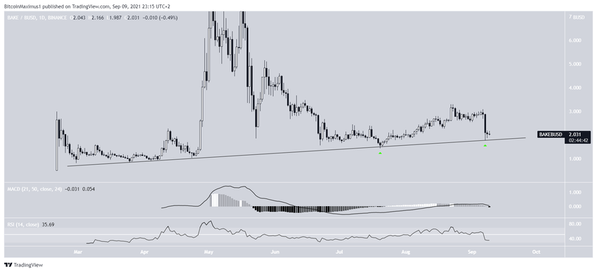 Курс BAKE с февраля двигался вдоль линии восходящей поддержки.