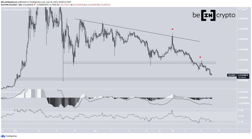 TEL движется вдоль нисходящей линии сопротивления с 26 мая; 1 июля цена предприняла безуспешную попытку прорыва.