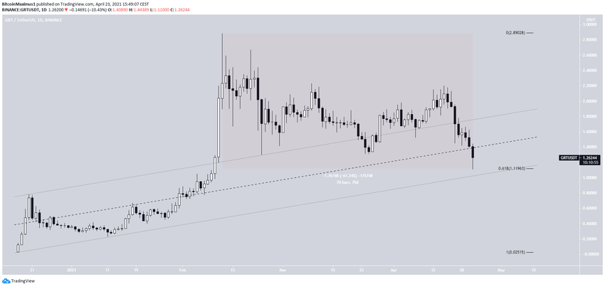 GRT падает уже 70 дней подряд, после достижения исторического максимума на уровне $2,88. Снижение было внушительным — монета потеряла 61% стоимости — но в целом оно не вышло за рамки коррекции.