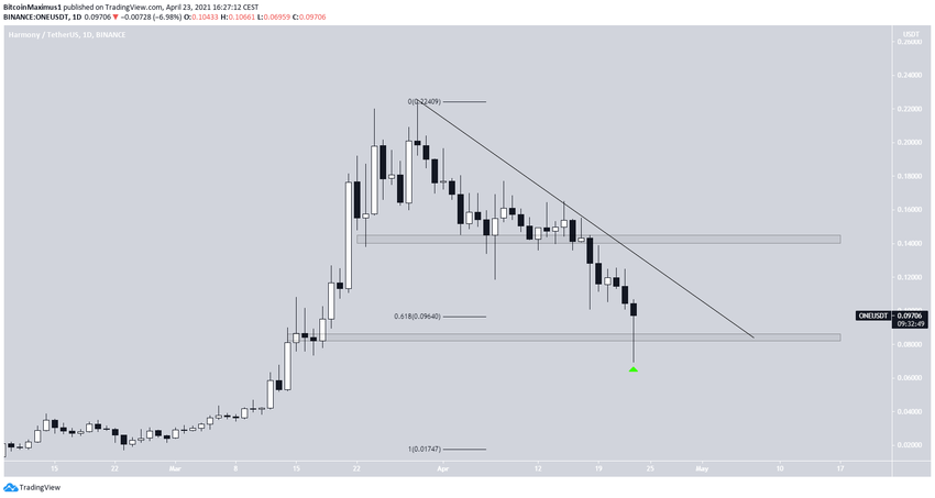 ONE снижается с 29 марта, после достижения исторического максимума на уровне $0,224. В этот же день на графике появилась «падающая звезда».