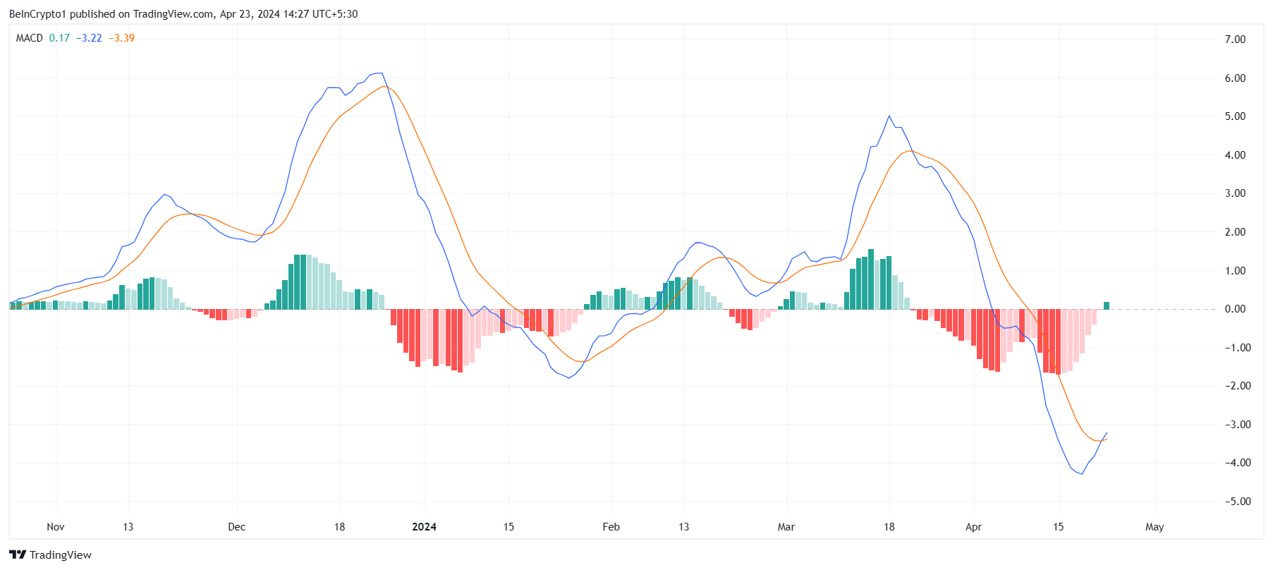Индикатор MACD также демонстрирует признаки усиления бычьих настроений. Этот технический индикатор используется для выявления изменений в импульсе и потенциальных разворотов тренда актива. На момент написания MACD формировал бычье пересечение с зеленым баром на гистограмме. Это первый подобный случай за месяц, и он может предвещать начало потенциального ралли.