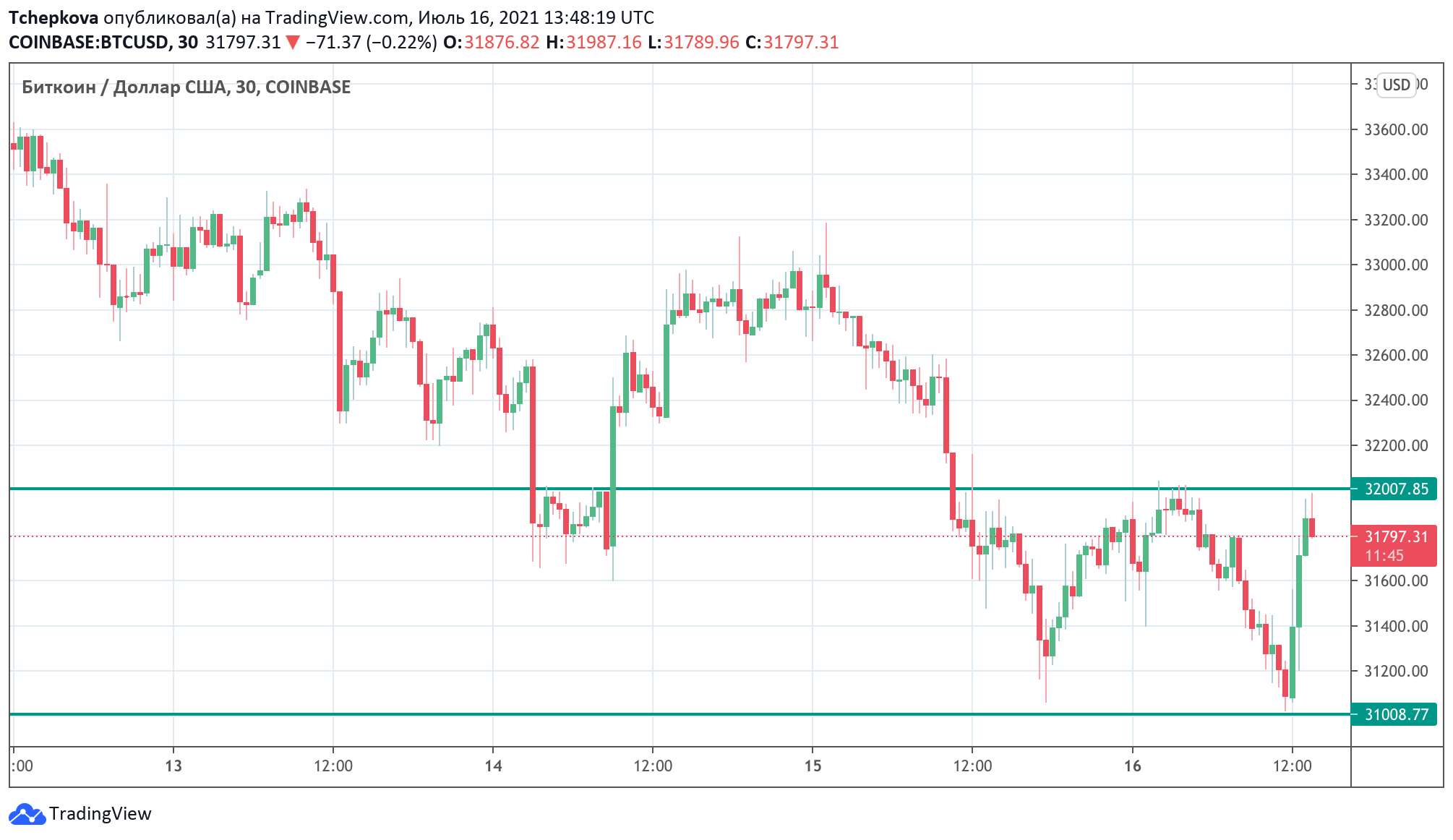 За несколько часов биткоин подорожал почти на $1 000, поднявшись от психологически значимой области $31 000 к сопротивлению на $32 000. Однако бычьего импульса не хватило для выхода из диапазона. На момент написания новости BTC/USD торгуется вблизи $31 800.