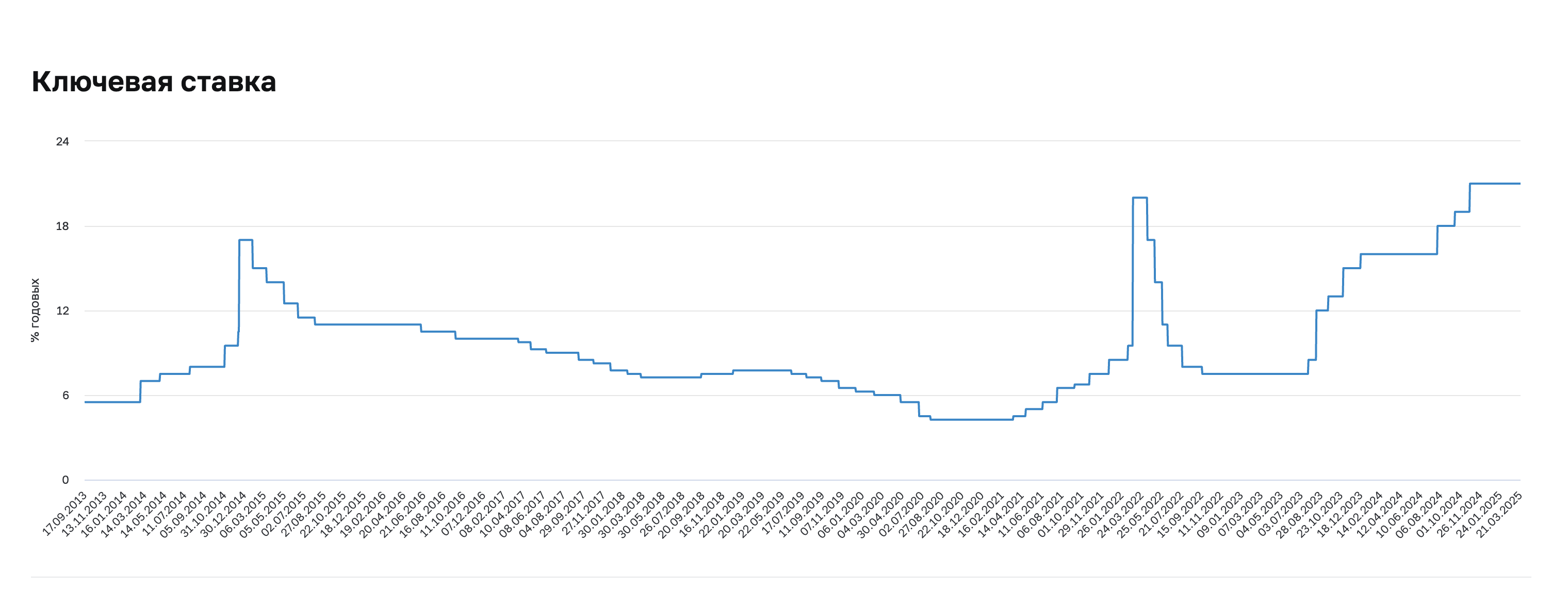 Как менялась ключевая ставка в России. Источник: cbr.ru