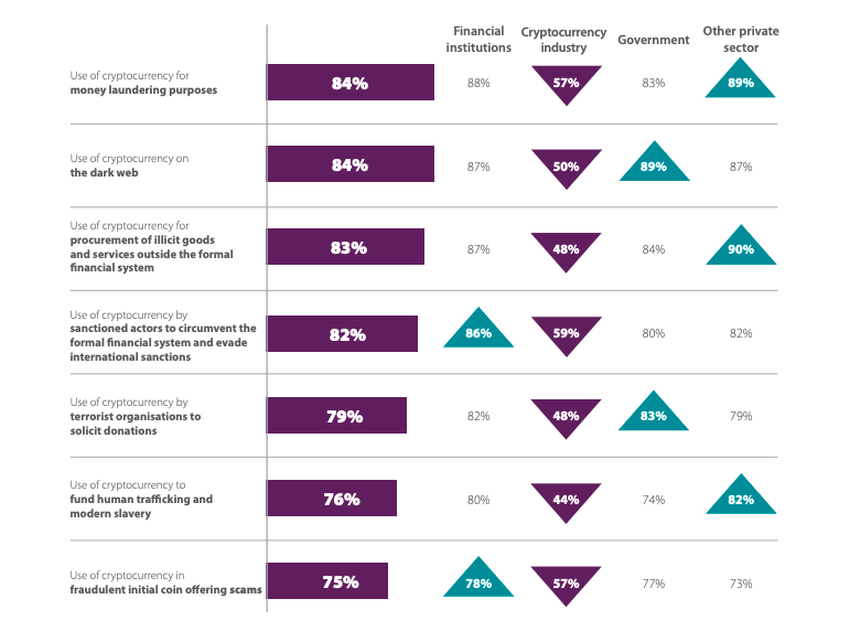 В исследовании, реализованном совместно с Ассоциацией сертифицированных специалистов по борьбе с отмыванием денег (ACAMS) и исследовательской компанией YouGov, приводится 566 ответов от участников финансовой и криптовалютной отраслей, включая криптобиржи, финансовых регуляторов и органы финансового мониторинга.