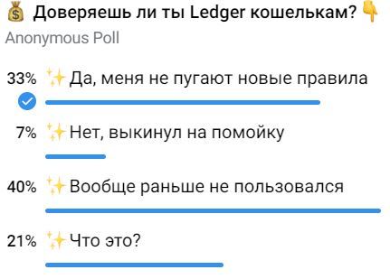 Опрос в Телеграм-канале BeInCrypto также показал, что большинство участников криптосообщества не видят в обновлении критических уязвимостей для безопасности кошельков Ledger.