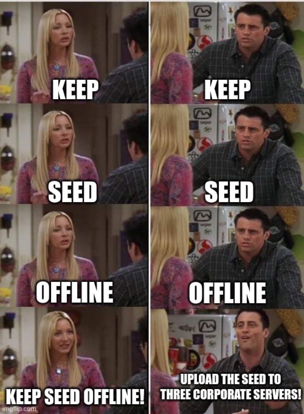 Храни сид-фразу оффлайн. Загрузи сид-фразу на три корпоративных сервера».