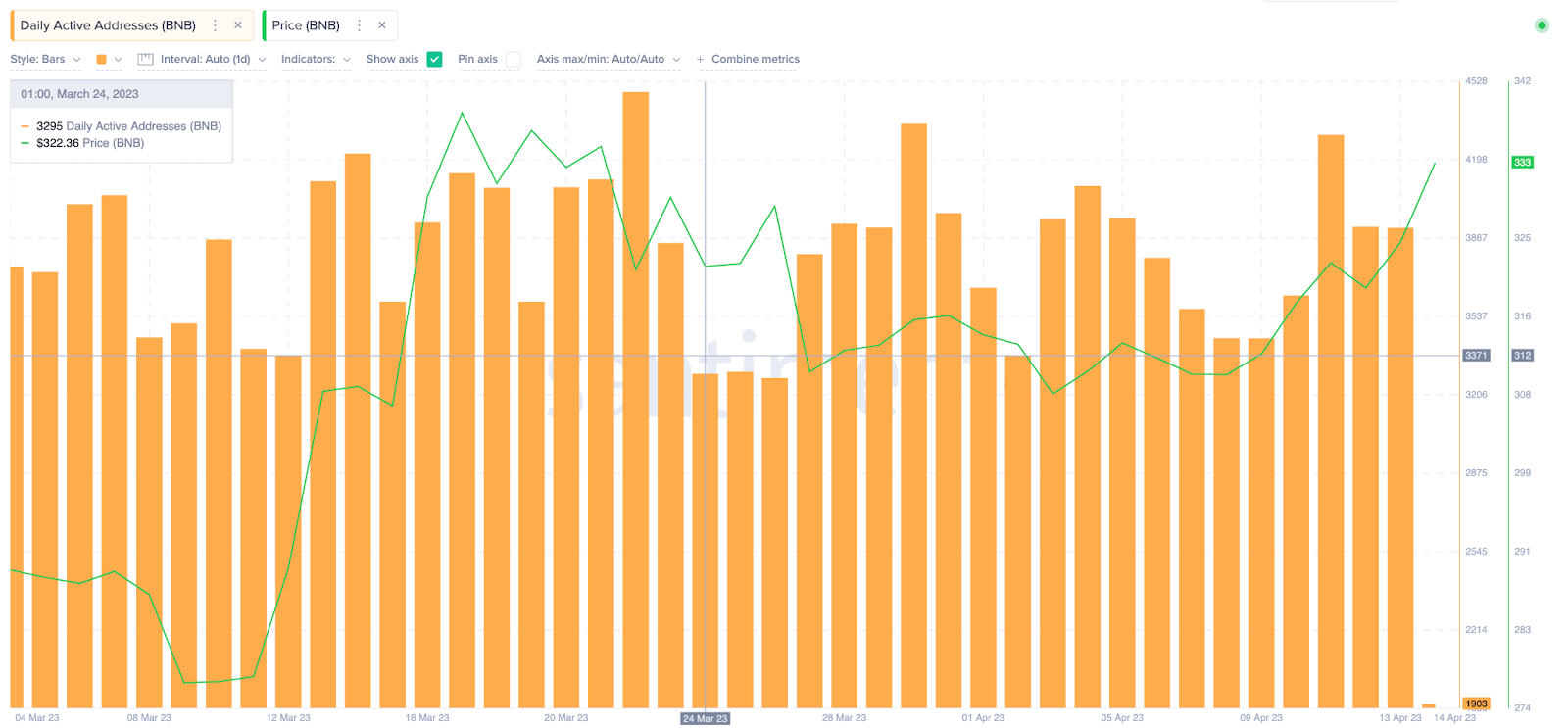 С тех пор как 24 марта Binance приостановила торги из-за технических проблем, количество активных пользователей сети BNB возросло на 20% — с 3 295 до 3 911. Это подтверждает, что на бычьи перспективы монеты никак не повлияла шумиха в СМИ.