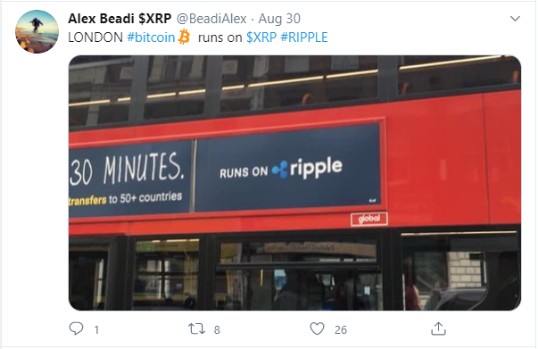 Но стоит отметить, что не только Binance решила разместить рекламу криптовалюты на улицах Лондона. По этому же пути пошел и Ripple. Разработчики токена XRP запустили рекламу своей монеты на лондонских автобусах.