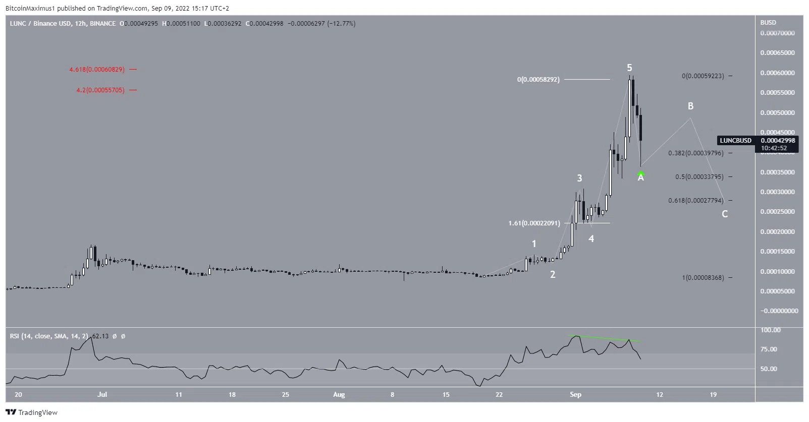 Ранее редакция BeInCrypto сообщала, что курс LUNC достиг важных уровней сопротивления. Техническая картина позволяет предположить, что LUNC уже достиг вершины.