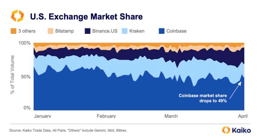 Тем не менее, Binance.US неплохо справляется со стрессовыми условиями – доля биржи на рынке США утроилась с 8% до более чем 24% за первый финансовый квартал.